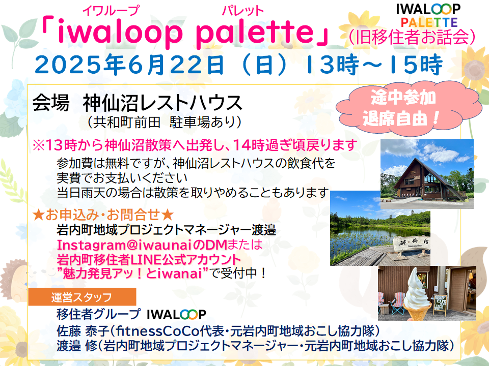 今後の「iwaloop palette」開催情報は、岩内町移住Instagram(地域プロジェクトマネージャー)@iwaunai